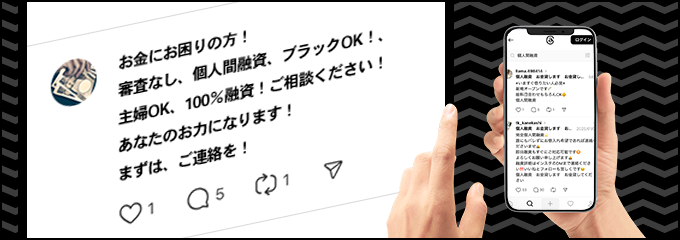 最近特に問題になっているのが、「個人間融資」「ソフト闇金」「後払い・ツケ払い現金化」といったSNS上の闇金です。